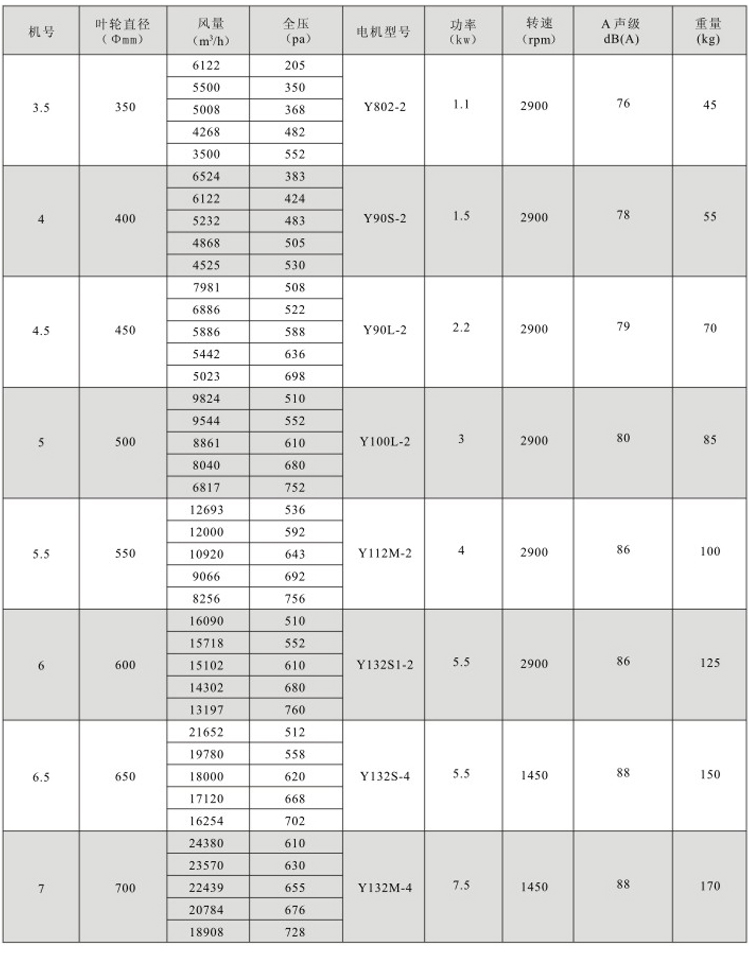??5、效率高:本系列风机采用先进的CAD软件经多目标优化设计研制开发的新产品,经实测表明风机效率大于80%,部分大机号大于85%,并具有效率曲线平坦的特点,有利于节能。