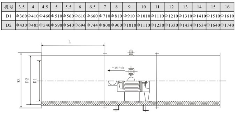 ??6、安装方便,占地较离心风机少:该风机基本形式为轴流式风机或混流式风机,可直接与风管连接或壁式安装,安装形式可采用垂直式或水平式,很大程度上节省了占地面积。