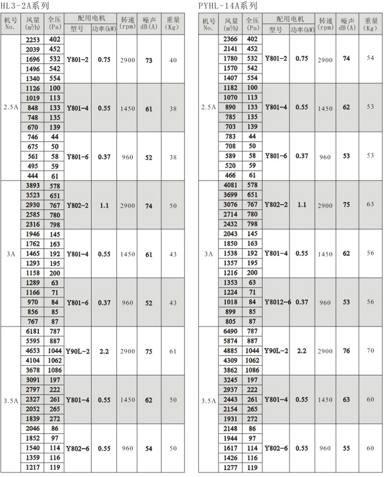 HL3-2A系列混流风机,PYHL-14A系列混流排烟风机性能参数表(5)
