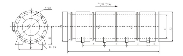 B2SDS-60~110型防爆隧道对旋轴流通风机外形图