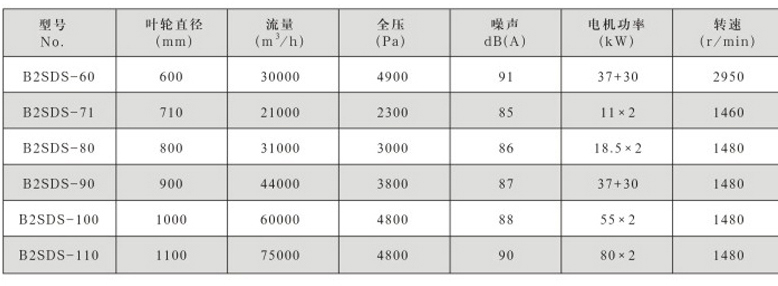 B2SDS型防爆隧道对旋轴流通风机性能表