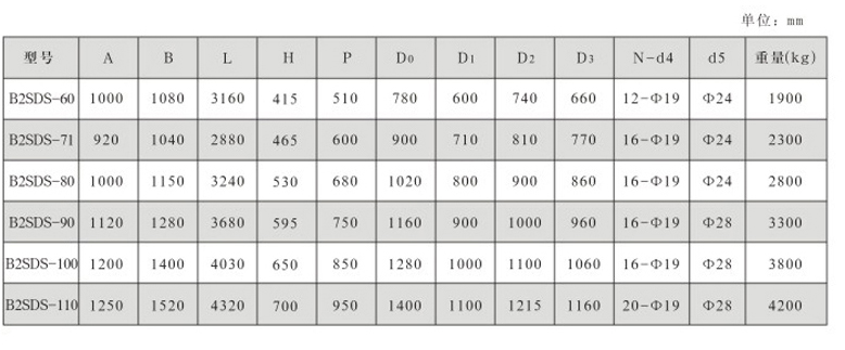 B2SDS-60~110型防爆隧道对旋轴流通风机外形尺寸表