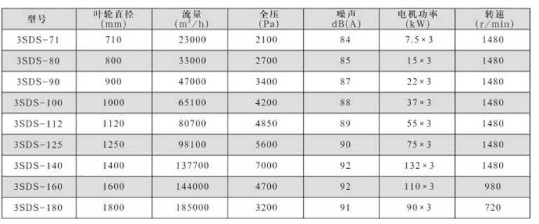 3SDS-71~180型隧道三级串联轴流通风机外形尺寸表