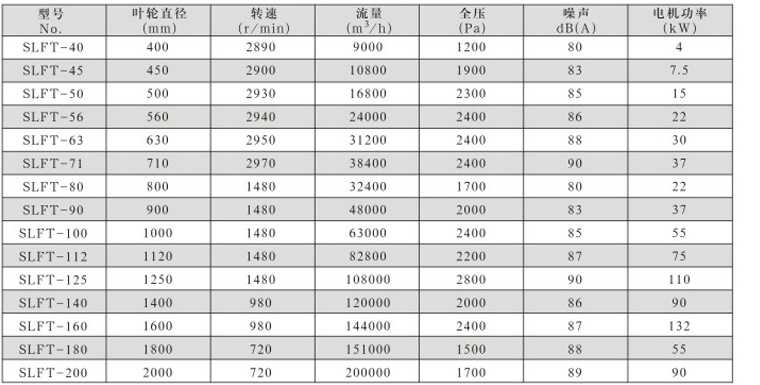 SLFT-40~140隧道子午加速轴流通风机外形尺寸表