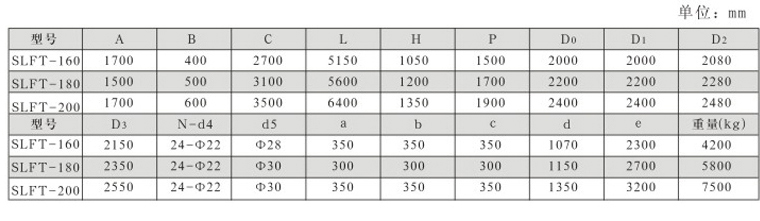 SLFT-160~200型隧道子午加速轴流通风机外形尺寸表