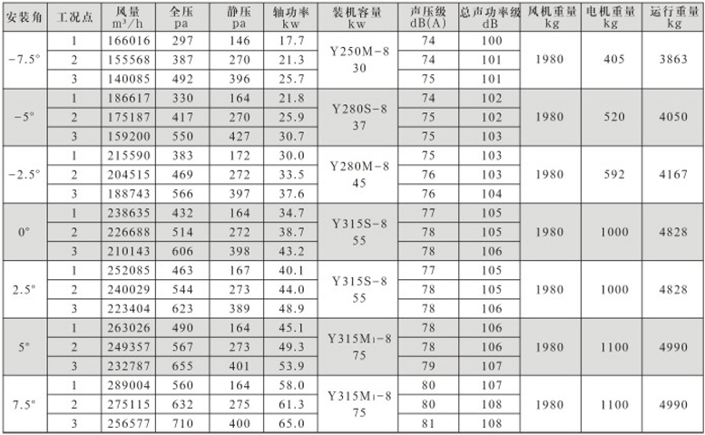 DTF(R)-7.1(9叶)系列地铁、隧道轴流风机性能表