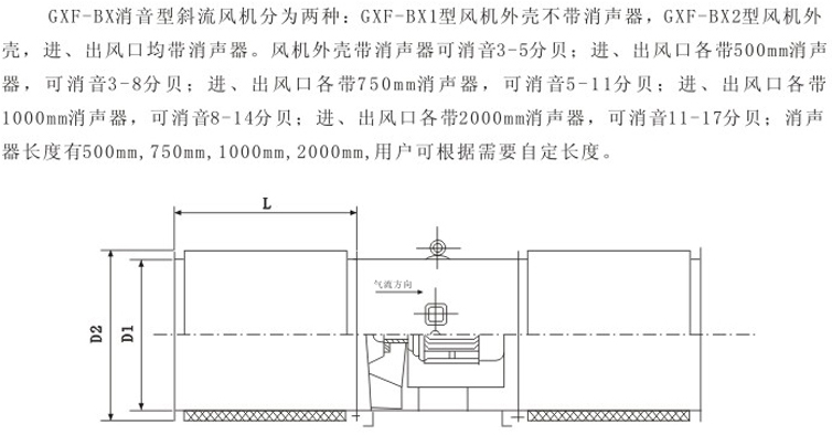 GXF-BX1消声型斜流风机安装尺寸(mm)