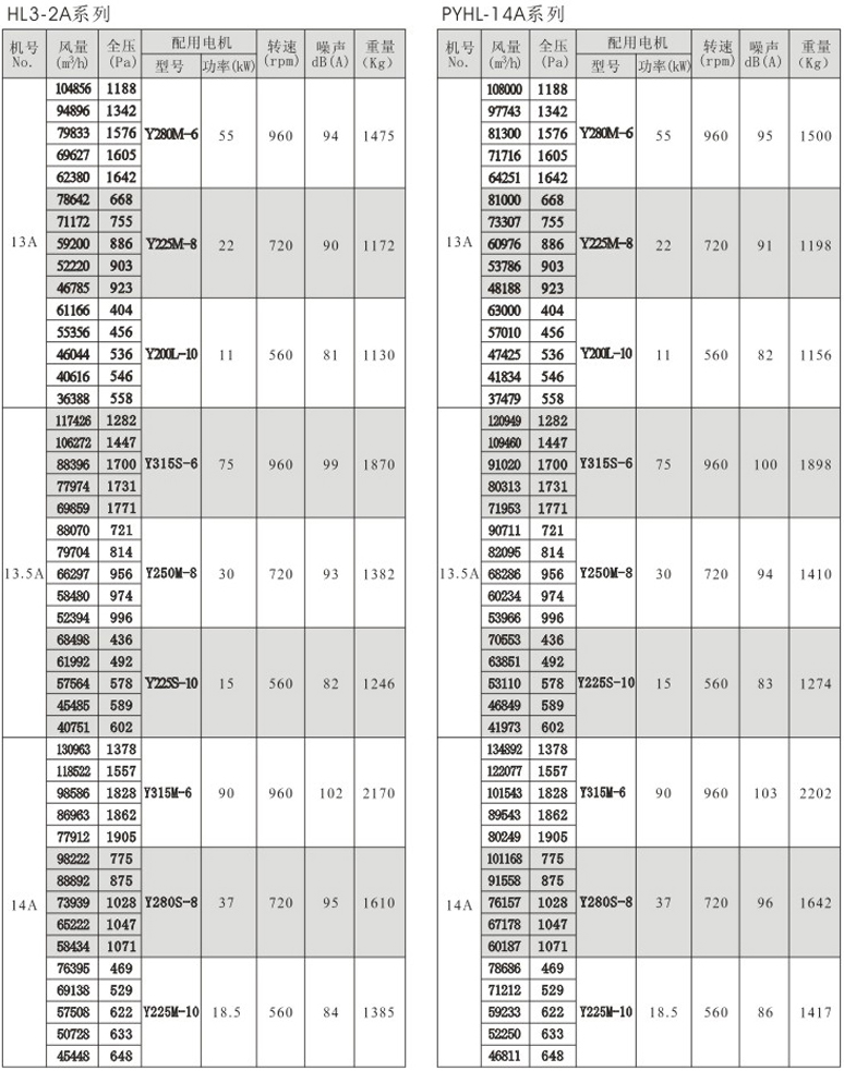 HL3-2A系列混流风机,PYHL-14A系列混流排烟风机性能参数表(5)