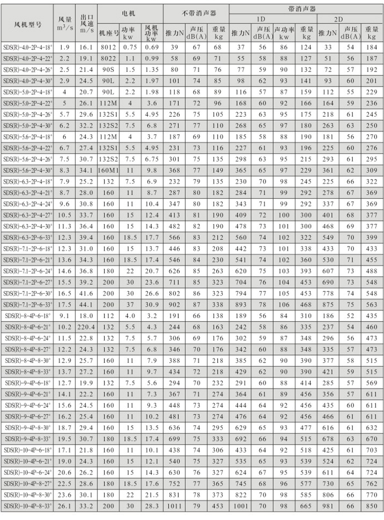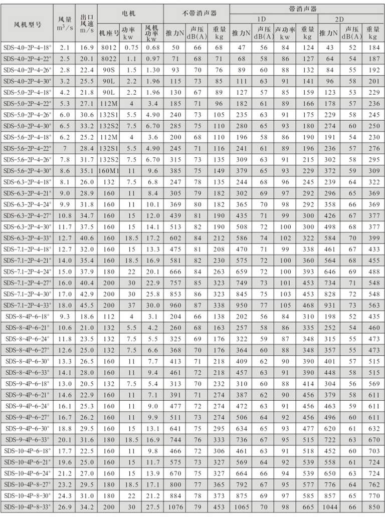SDS-90~140型动叶可调隧道单级轴流通风机外形尺寸表