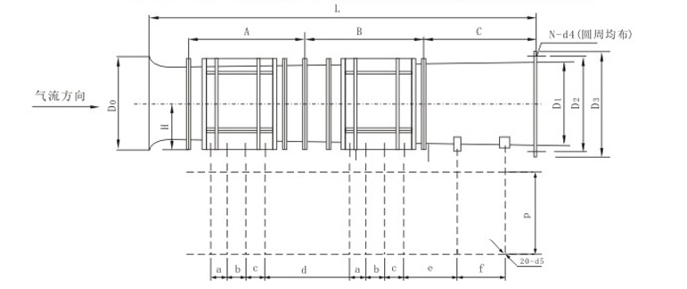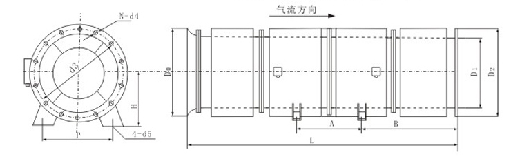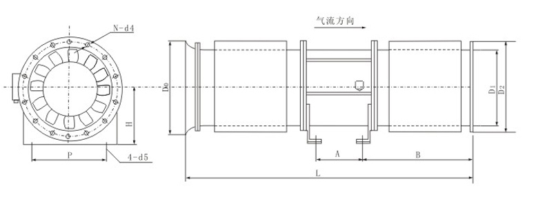 B2SDS-60~110型防爆隧道对旋轴流通风机外形图