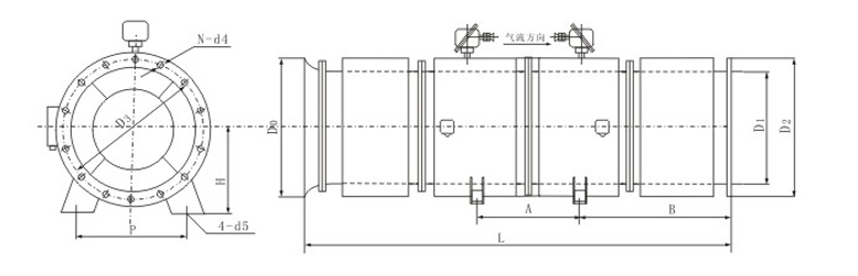 SDS-160~200型动叶可调隧道单级轴流通风机外形图(左)