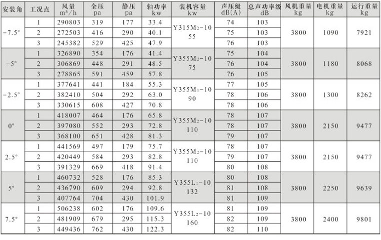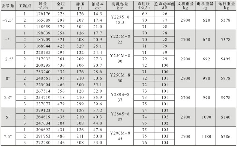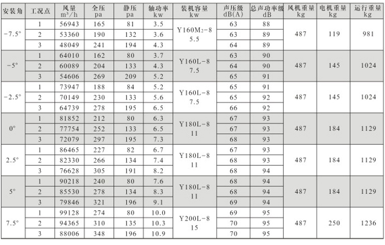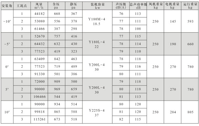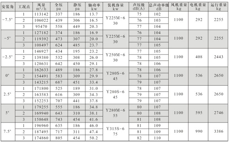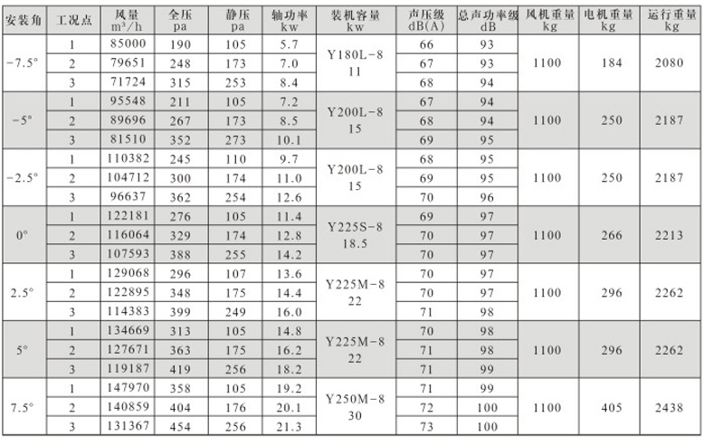 DTF(R)-7.1(9叶)系列地铁、隧道轴流风机性能表