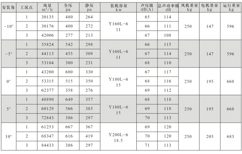 DTF(R)-5.6(9叶)系列地铁、隧道轴流风机性能表